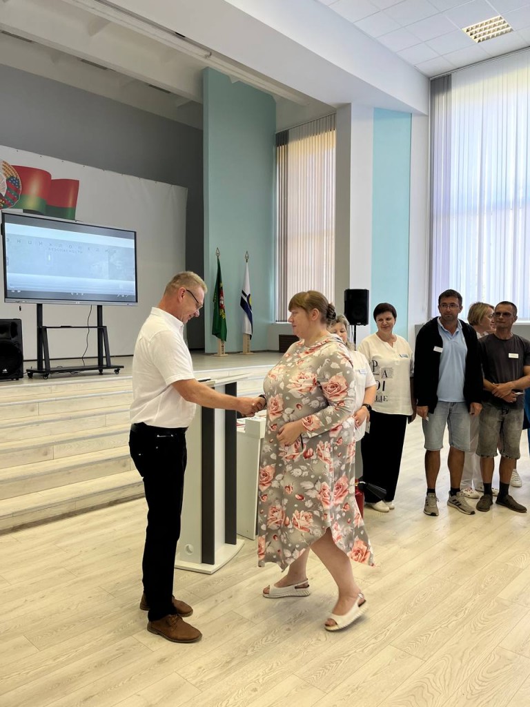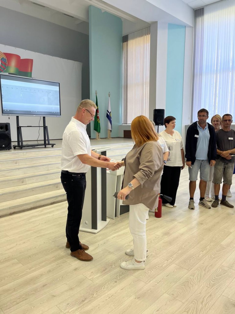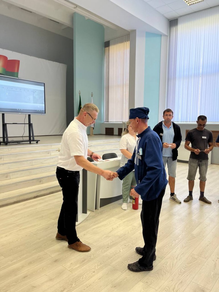 Председатель Витебской областной организационной структуры РГОО «БДПО» Александр Лобковский провёл встречу с трудовым коллективом государственного учреждения Бабиничский социальный пансионат «Звёздный». В ходе мероприятия он вручил членские билеты новым членам добровольного пожарного формирования.