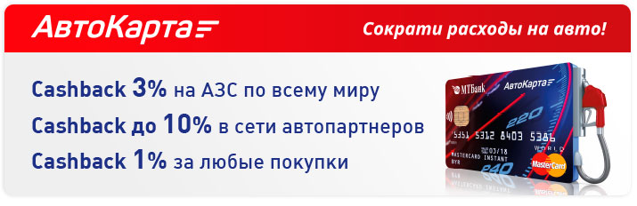 Автокарта от МТБанка – это уникальный банковский продукт, не имеющий аналогов в Беларуси. Она создана специально для автовладельцев и членов их семей. Теперь любая поездка, будь то дальнее путешествие или дорога на работу, станет приятнее, ведь с каждой обязательной траты (топливо, запчасти, техосмотр, замена шин, автомойка и др.) при помощи Автокарты от МТБанка вам будет возвращаться cashback до 10%. Также владельцы Автокарты получат 1% cashback за любые покупки как в РБ, так и за границей.