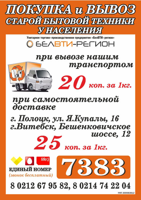 При вывозе нашим транспортом - 20 коп. за 1кгПри самостоятельной доставке - 25 коп. за 1 кг