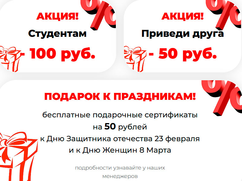 Акция для студентов — скидка 100.00 рублей