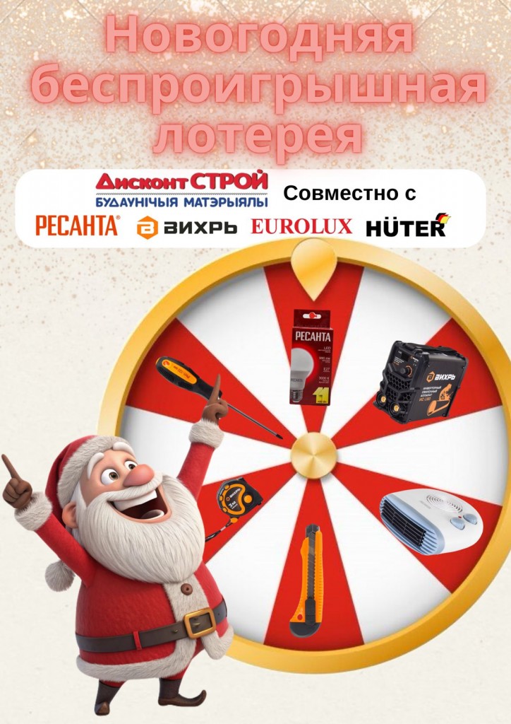 Друзья, чтобы праздник стал по-настоящему волшебным, ДисконтСтрой запускает беспроигрышную лотерею! Это не конкурс, здесь нет проигравших — каждый участник гарантированно получает свой новогодний подарок!