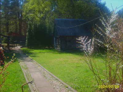 Бревенчатый дом за высоким забором (2 комнаты, 2 этажа) находится в пригороде в живописном месте, рядом лес и река Двина. Рядом находится продуктовый магазин и "Парк Мазурино"