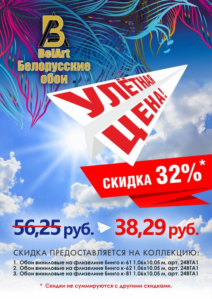 Только сейчас у нас скидка до 32% на широкий ассортимент обоев! Пора обновить интерьер и создать уют в вашем доме.