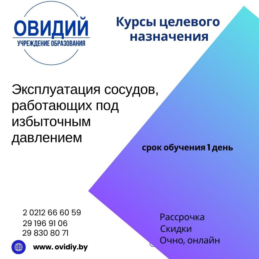 Курсы целевого назначения: Эксплуатация сосудов, работающих под избыточным давлением