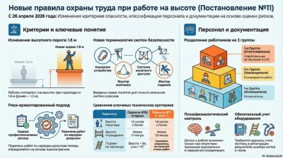 1. Новые границы «высоты»: Теперь работы на высоте — это не только 5 метров, но и любые работы на расстоянии менее 2 м от неогражденных перепадов 1,8 м и более, а также лестницы выше 5 м с уклоном более 75°.