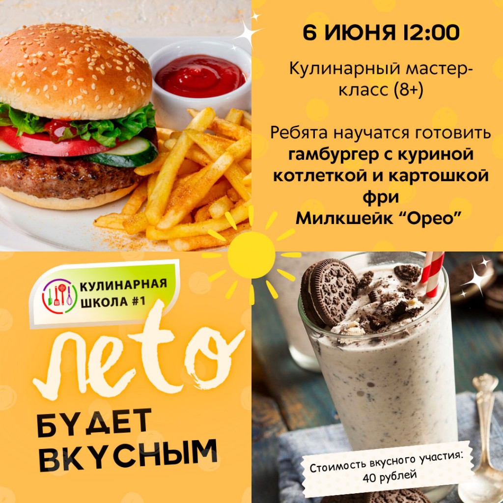 6 июня 12:00 - "Гамбургер с куриной котлеткой и картошкой фри" + "Милкшей "Орео"