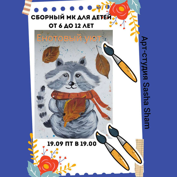 19 сентября в 19:00 мы ждём ребят от 6 до 12 лет на увлекательный мастер-класс, где творчество оживёт в каждом движении кисти!
