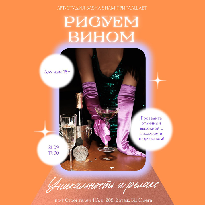 Приглашаем вас на уникальный мастер-класс (18+) — «Рисование вином». Это вечер, где творчество встречается с изысканным вином, а вы создаёте настоящее искусство в расслабленной атмосфере.
