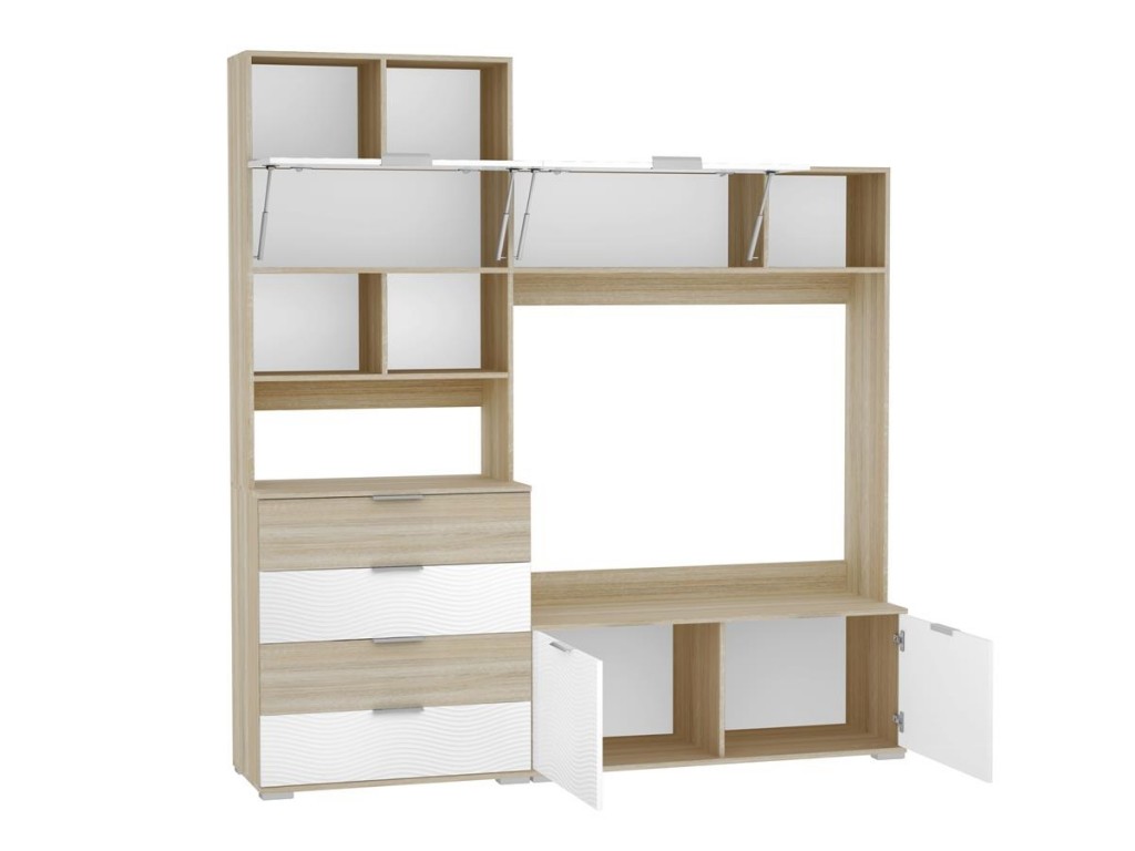 Модульная гостиная «Терра» в цвете белый глянец/дуб сонома.