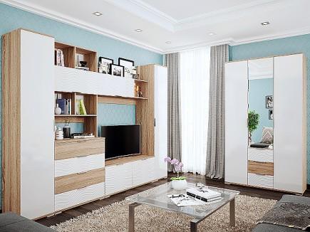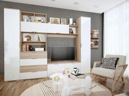 Стильная гостиная «Терра» с декоративными рельефными вставками идеально подойдет для современного интерьера. Сочетание рисунка натурального дерева с глянцевыми фасадами зрительно расширяет пространство, а модульная система позволит создавать свой уникальный интерьер в гостиной.