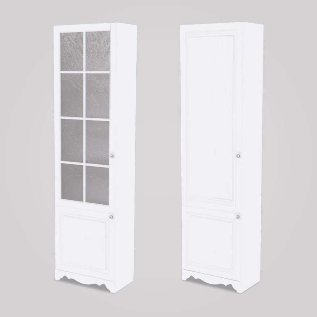 Корпус: ЛДСП «Белый»Стеклостворки: Фасады со сквозной решетчатой фрезеровкой и стеклом «Мюнхен» (с эффектом текущей воды). Стекло крепится сзади фасада при помощи кляймеров.