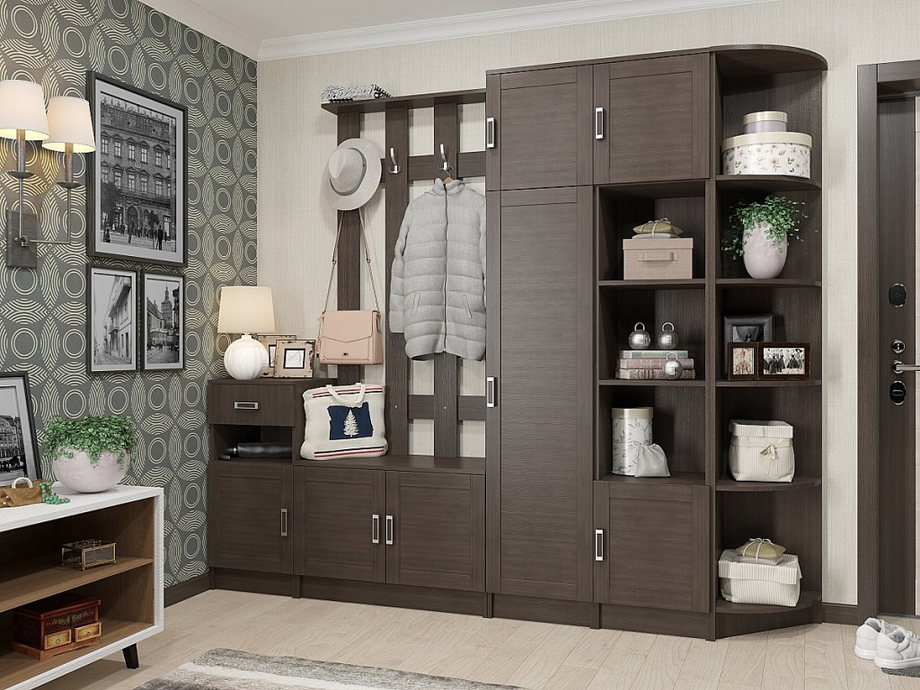 При желании «Лофт» можно дополнить одно- или двустворчатыми шкафами для хранения верхней одежды с вместительными антресолями, полками и нишами для необходимых мелочей.