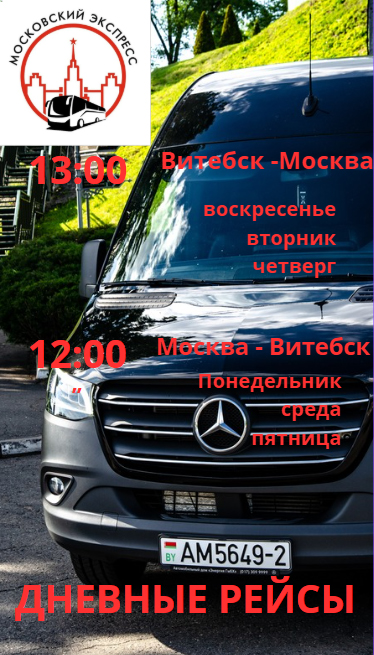 Отправление в воскресенье, вторник, четверг в 13.00 с автовокзала г. Витебска. Из Москвы отправление в 12.00 с Международного автовокзала "Северные ворота" (станция метро "Ховрино") по понедельникам, средам и пятницам. Будем рады Видеть вас в наших комфортабельных современных автобусах.