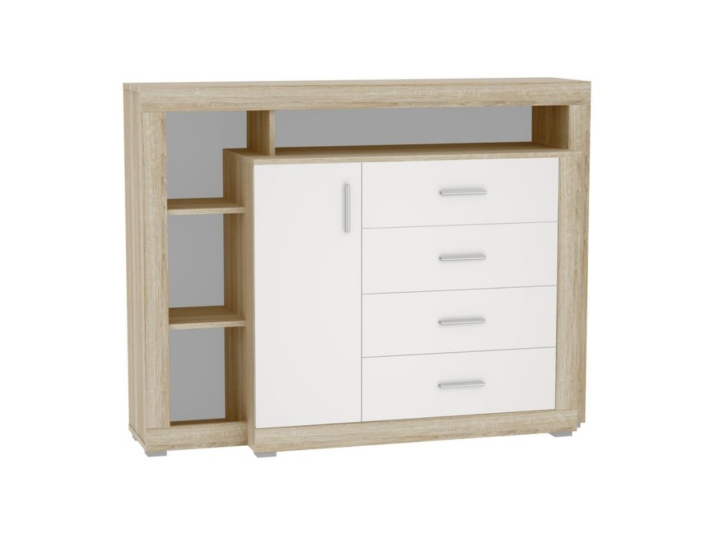 Комод Берген КМ-214 с 4-мя ящиками МДФ Белый глянец/Дуб Сонома — 373 руб.