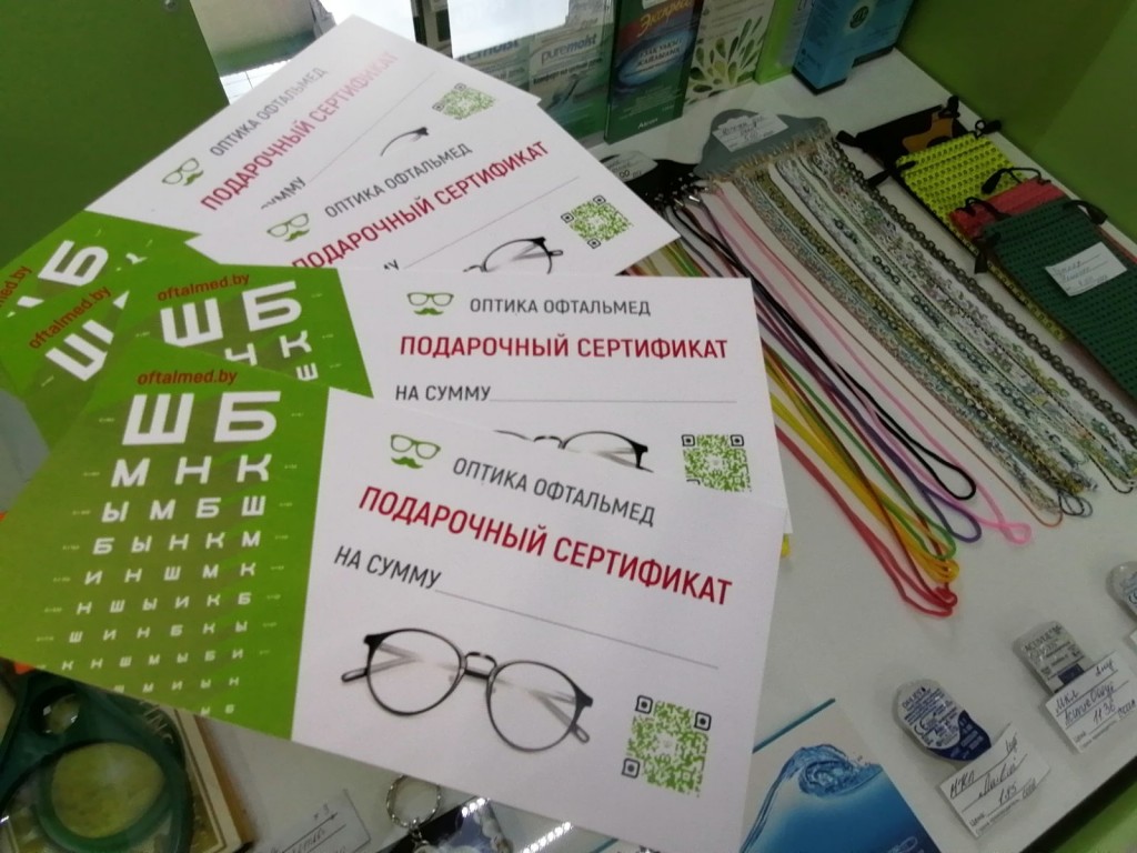 Обладатель сертификата выбирает подaрок на свой вкус: медицинские и солнцезащитные очки, контактные линзы, услуги врачa-офтальмолога и многое другое.