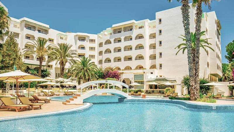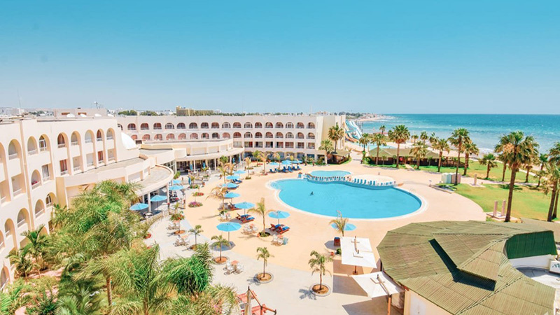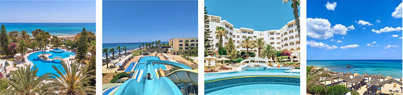 Зелёный отель с красивой территорией и бесподобным по красоте морем с пологим заходом! Рядом с отелем расположены сувенирные лавки, магазины, аптеки, бары и рестораны. Лучший талассо-центр Bio Azur с морским бассейном «Акватоник». Дневные и вечерние шоу, спорт, мини-диско для детей – скучать не получится. А еще, для юных путешественников есть специальное меню в ресторане, мини-клуб и детская площадка. Для взрослых: анимация, теннисный корт, баскетбольная площадка, мини-гольф, дискотека.