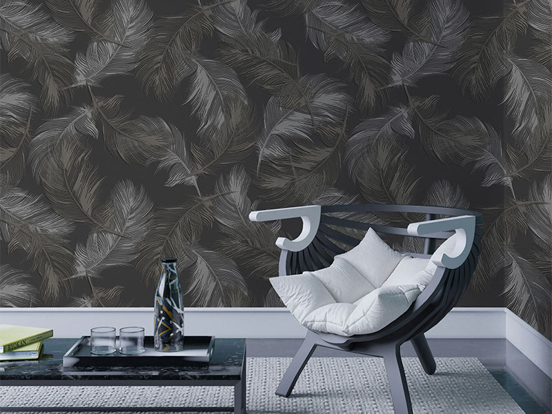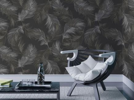 Тёмный фон обоев создает атмосферу уюта и защищенности, а рисунок добавляет элемент изысканности и художественного выражения.Перья могут быть выполнены в разных оттенках, создавая интересный контраст с основным цветом обоев.