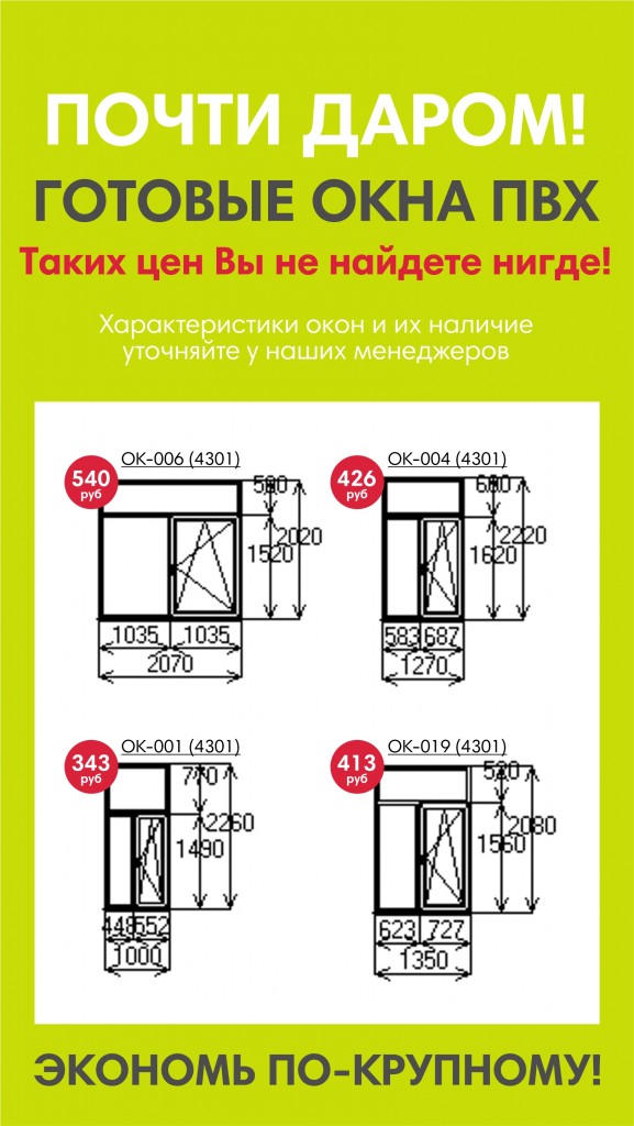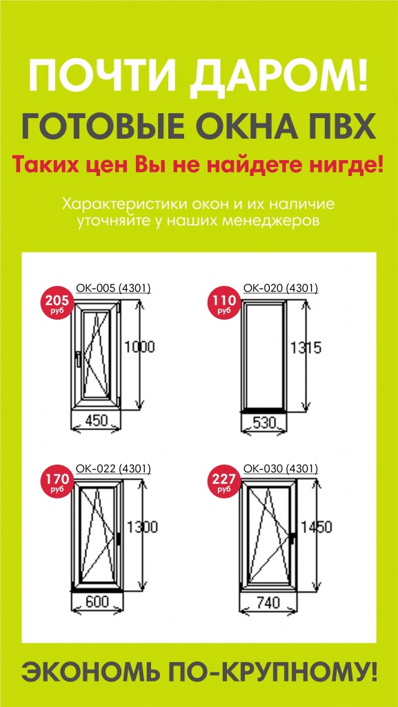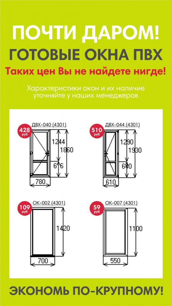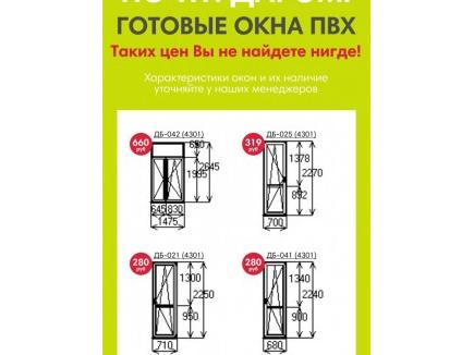 БОЛЬШОЙ ВЫБОР ГОТОВЫХ ОКОН, ДВЕРЕЙ, БАЛКОНОВ, БАЛКОННЫХ БЛОКОВ ПВХ.