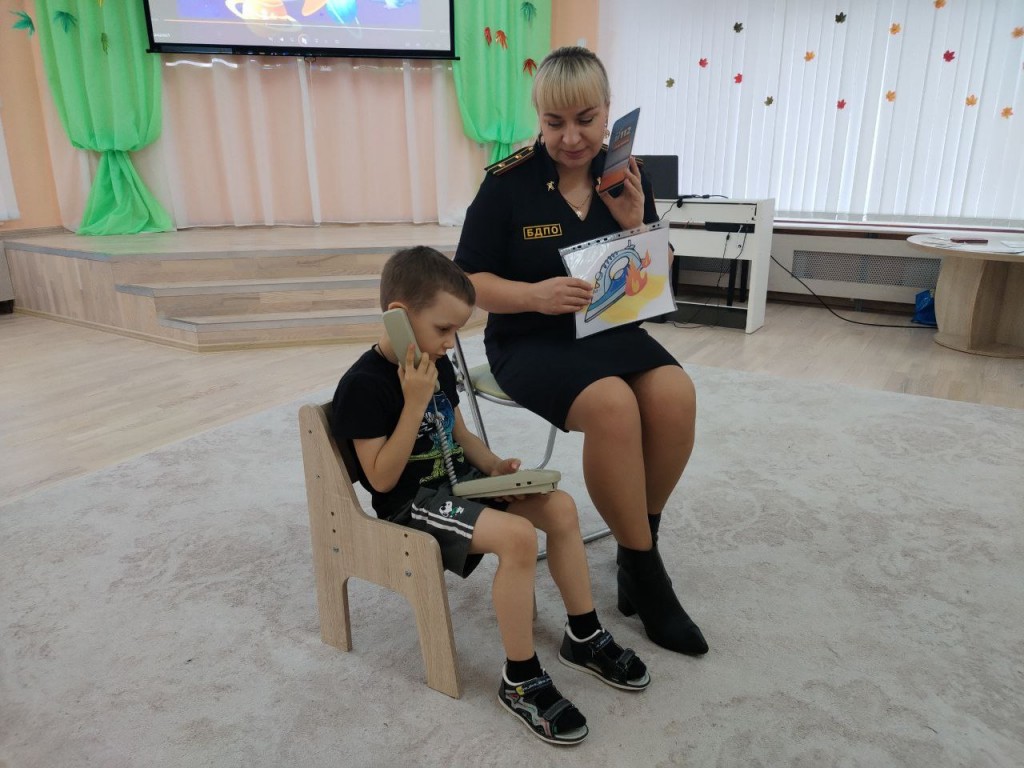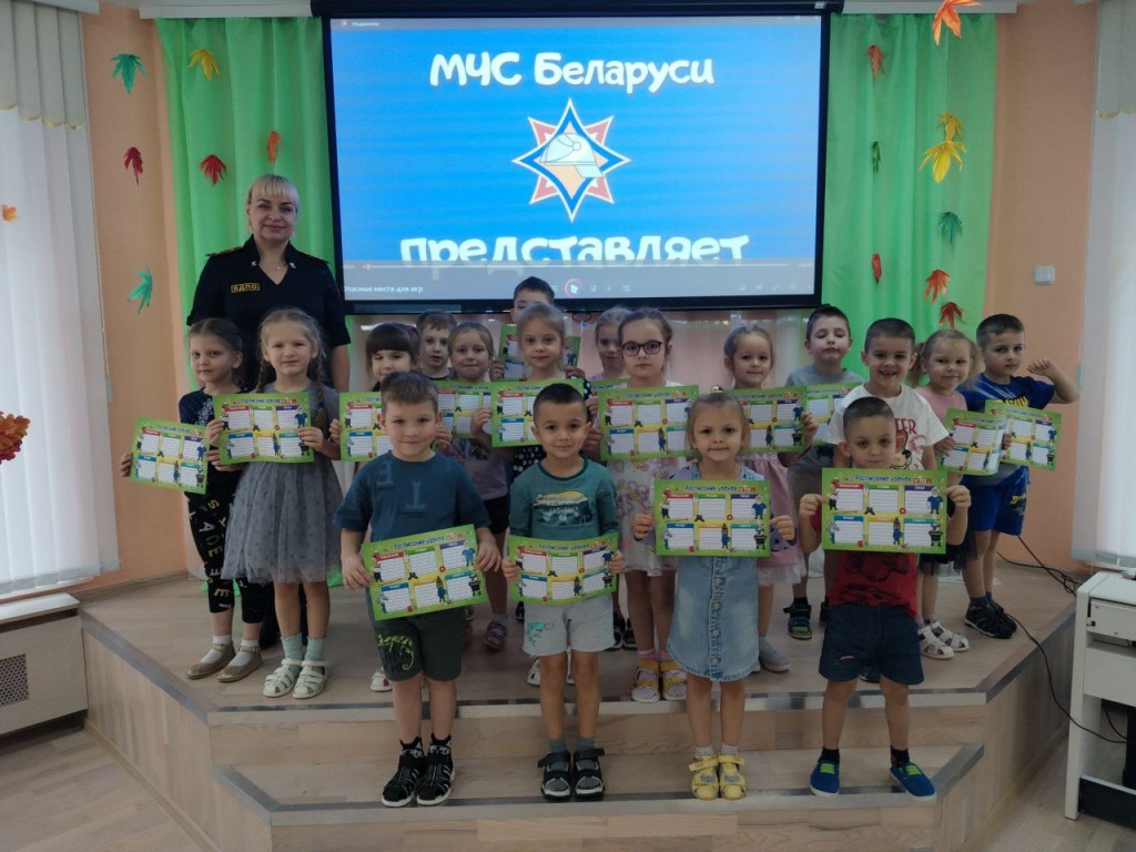 Работник добровольного пожарного общества г.Витебска провела для дошкольников детского сада №113 увлекательное интерактивное занятие, на котором рассказала как безопасно вести себя на улице и дома, чтобы избежать беды. Она напомнила детям номера телефонов служб экстренного реагирования: 101 и 112, и вместе они потренировались правильно вызывать спасателей по номеру 112.