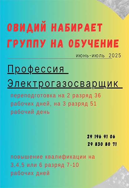 Учреждение образования "Овидий" приглашает Вас на обучение по профессии электрогазосварщик!