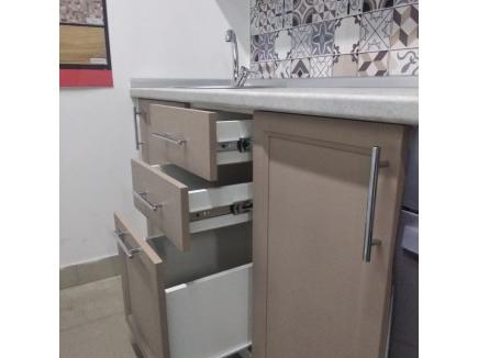 Поверхность фасадов из МДФ — матовая структурированная из эко шпона, покрытая защитным лаком (Германия). Проблем с отпечатками пальцев или водяными разводами больше не будет, а также эту кухню легко чистить.