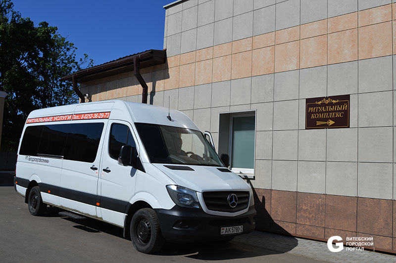 Республиканское унитарное предприятие Белсудэкспертобеспечение оказывает ритуальные услуги по перевозке тел покойных автомобилем Mercedes-benz Sprinter, оборудованным специальным сдвижным подиумом под гроб.
