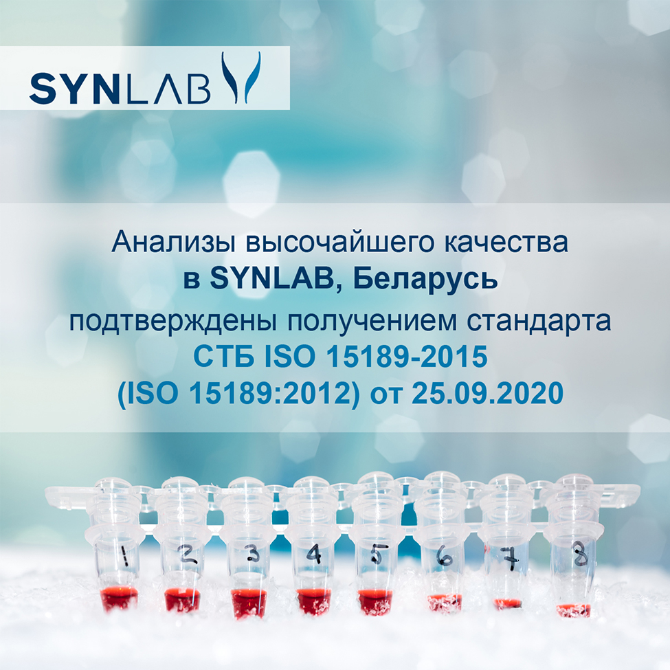 Медицинская лаборатория SYNLAB, Беларусь аккредитована по СТБ ISO 15189-2015 (ISO 15189:2012, IDT) «Медицинские лаборатории. Требования к качеству и компетентности». В области аккредитации общий анализ крови, коагулограмма, витамины, биохимия, гормоны, онкомаркеры, диагностика инфекций.