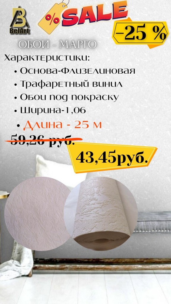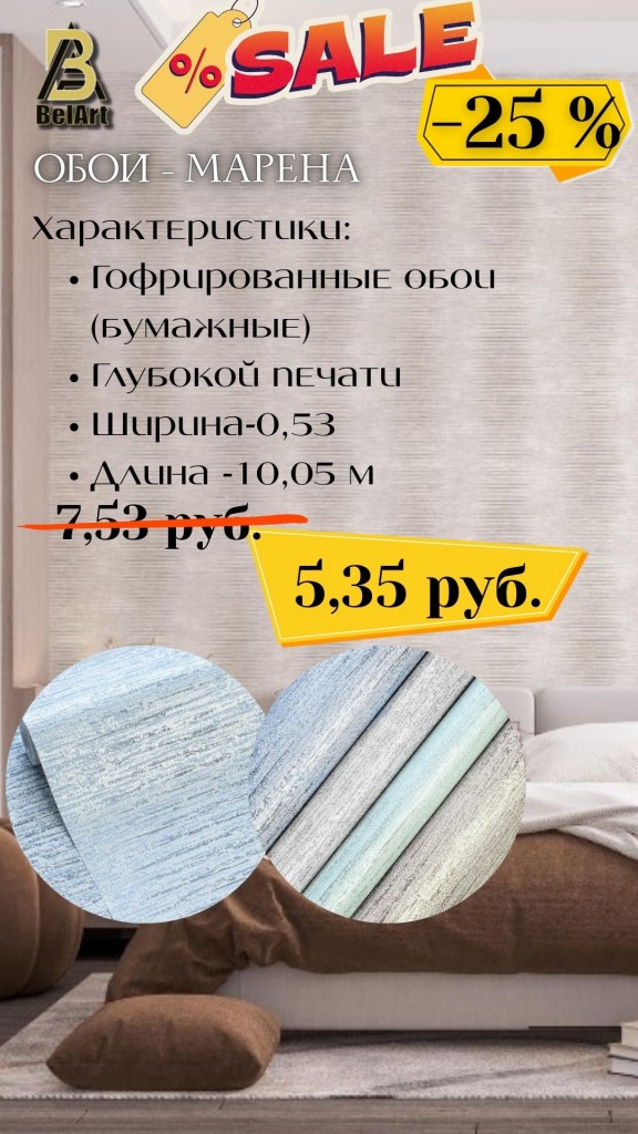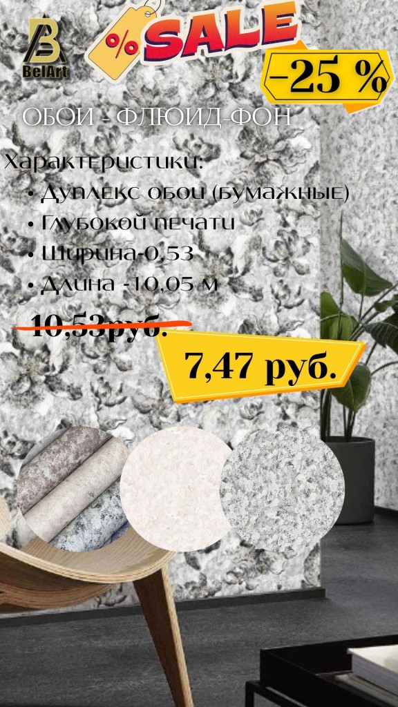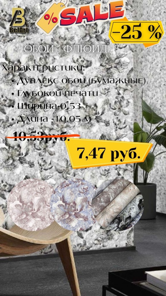Жителям и гостям города представилась отличная возможность обновить интерьер с качественными обоями из Беларуси по выгодной цене «СКИДКА -25%».