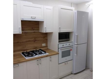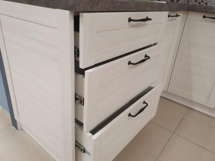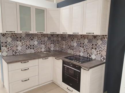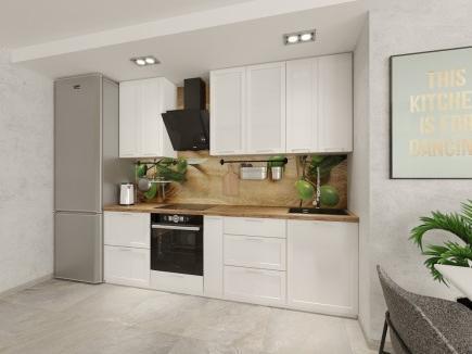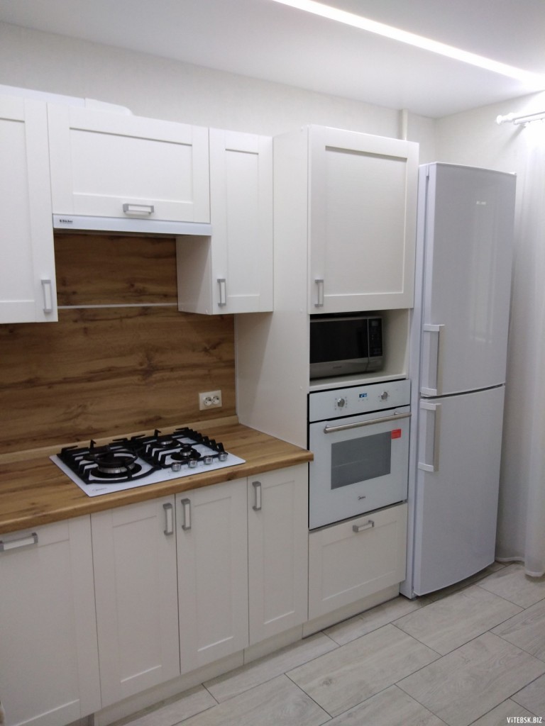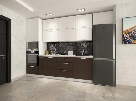 Серия кухонь Monika имеет рамочные фасады в покрытии «экошпон». Такой вид фасада позволяет комбинировать в одном фасаде несколько цветов. Так же возможно остекление в матовое стекло Лакомат, либо цветные лакобель.