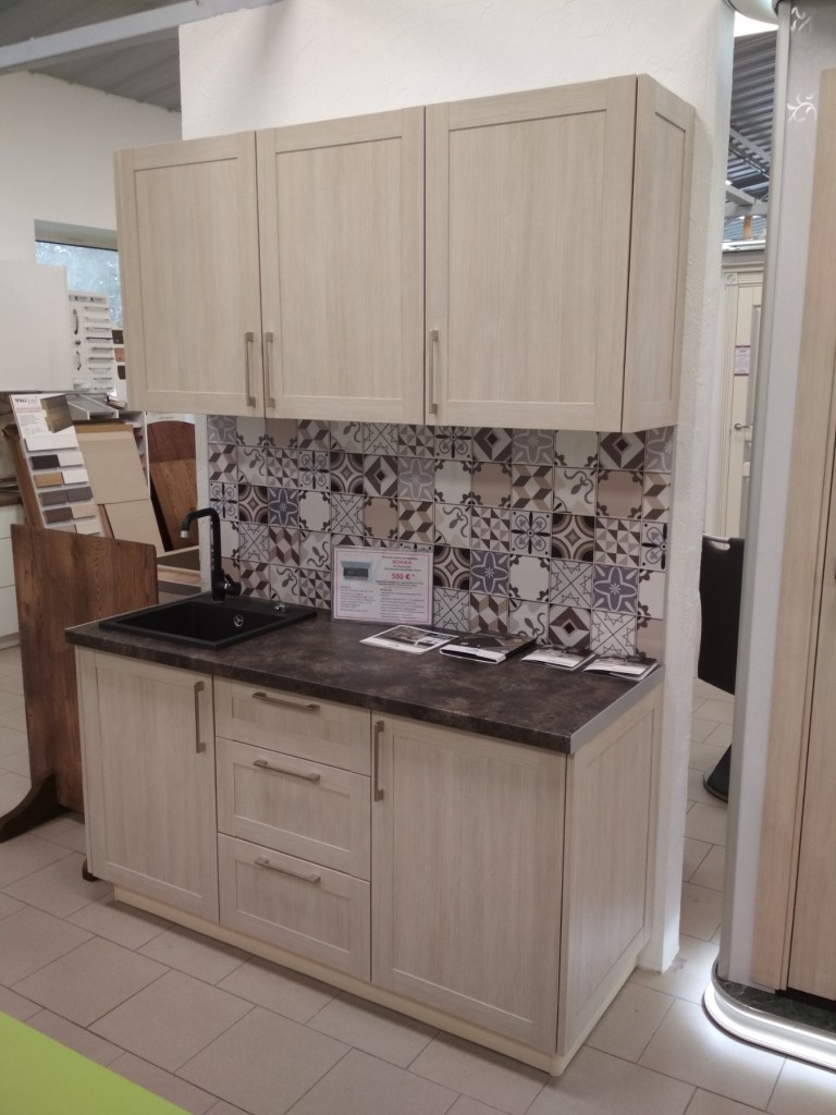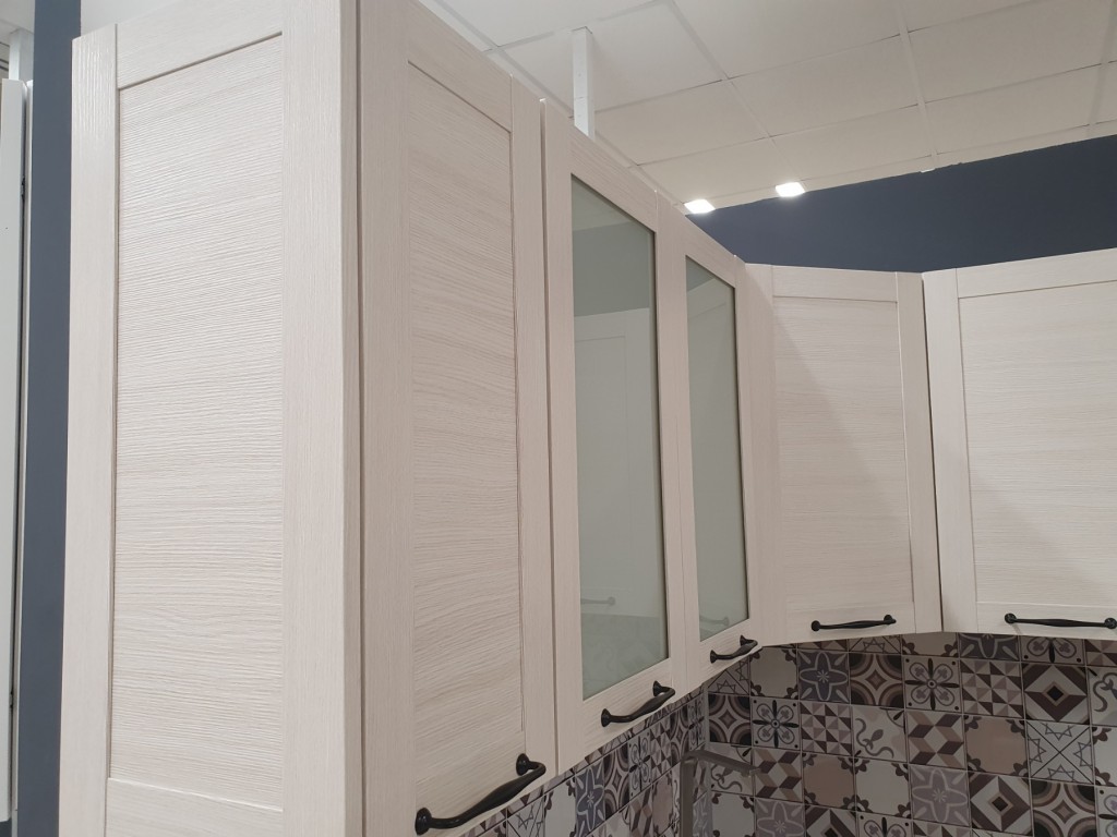 Серия кухонь Monika имеет рамочные фасады в покрытии «экошпон». Такой вид фасада позволяет комбинировать в одном фасаде несколько цветов.