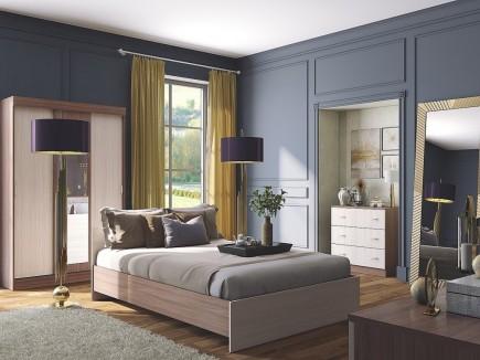 Спальный гарнитур «Бася» предлагает большой выбор модулей: кровати стандартных размеров от 0,8м до 1,6м, большая кровать 2,3м с закроватным модулем для хранения нужных в спальне мелочей, 2-х и 3-х створчатые платяные и бельевые шкафы и антресоли, шкаф-купе с зеркалом на центральной створке, туалетный столик с зеркалом-трельяжем, небольшой вместительный комод.