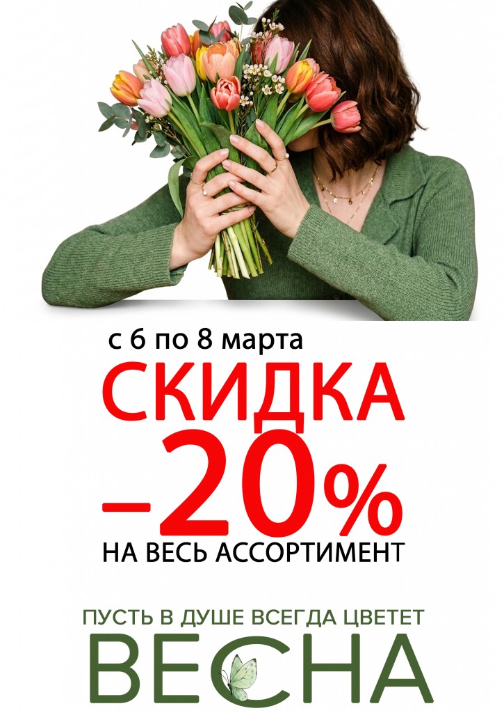 В рамках весенней акции действует скидка 20% на одежду. Это отличная возможность приобрести стильные и качественные вещи по более выгодной цене. В ассортименте — одежда на каждый день, комфортные и практичные модели, а также варианты для создания ярких весенних образов.
