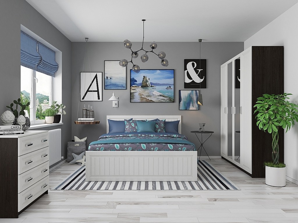 Модульный принцип комплектования позволяет самостоятельно определять количество мебели в спальне.