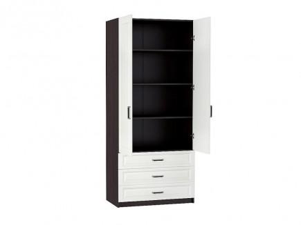 Отделка фасадов — МДФ толщиной 16 мм в цвете белое дерево, корпус ЛДСП в цвете венге премиум, задняя стенка — ДВП в цвет корпуса.