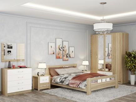 Фабрика Vivat представляет модульная спальню «Сопрано» в цвете «Белый глянец» / «Дуб cонома». Корпус и фасады изготовлены из прочного и экологически чистого ЛДСП толщиной 16 мм.
