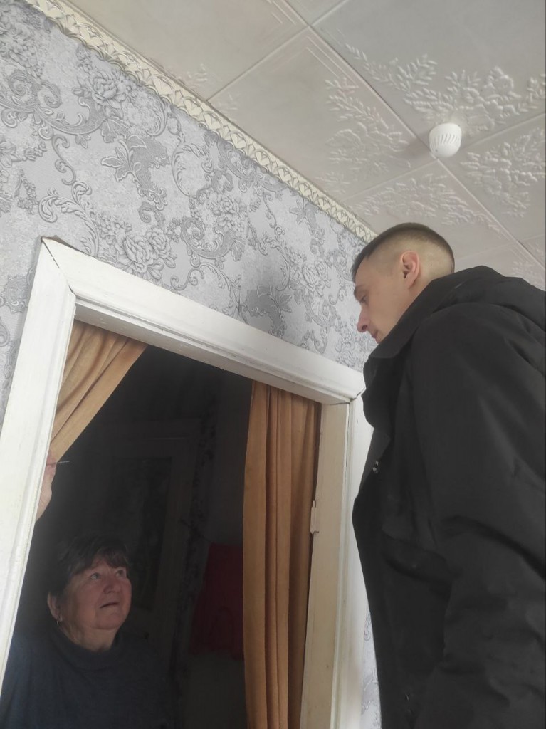 Председатель Озерецкого селького совета вместе с работниками Глубокской межрайонной организационной структуры Белорусского добровольного пожарного общества в домах одиноко проживающих граждан установили автономные пожарные извещатели.