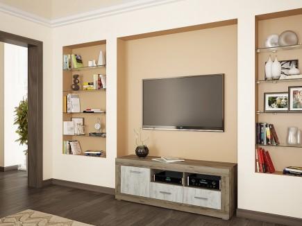Vivat представляет тумбу «Модерн ТБ-403 в цвете дуб белый/дуб серый. Выразительная древесная текстура фасадов внесет природное тепло гостиной.