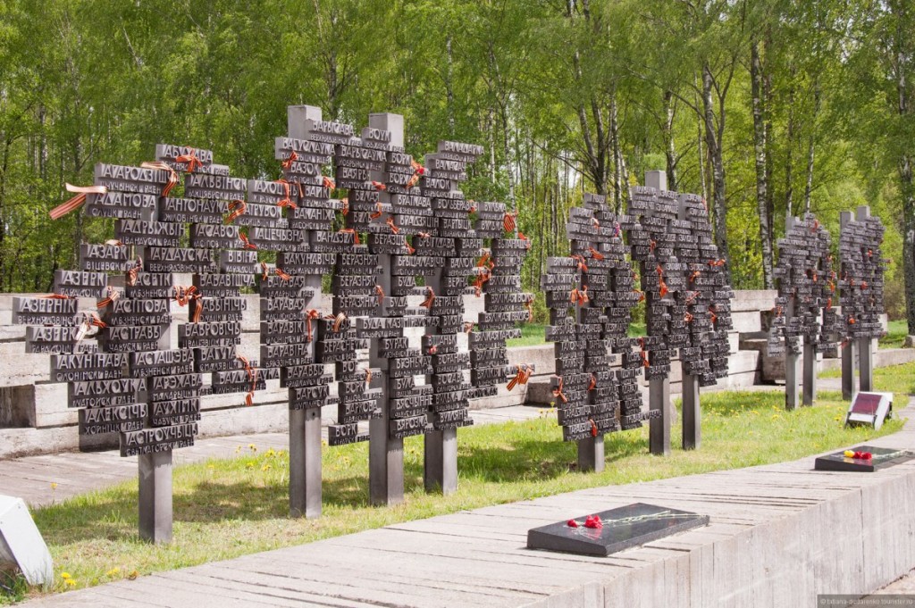 Вы увидите единственное в мире «кладбище деревень» — 185 символических могил, каждая из которых хранит урну с землей, привезенной из сожженных, но так и не восстановленных после войны белорусских деревень. Венчает комплекс знаменитая шестиметровая бронзовая скульптура «непокоренный человек» — образ выжившего жителя Хатыни с убитым сыном на руках.
