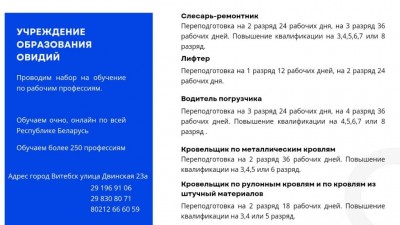 Обучение в Витебске. Курсы. Переподготовка