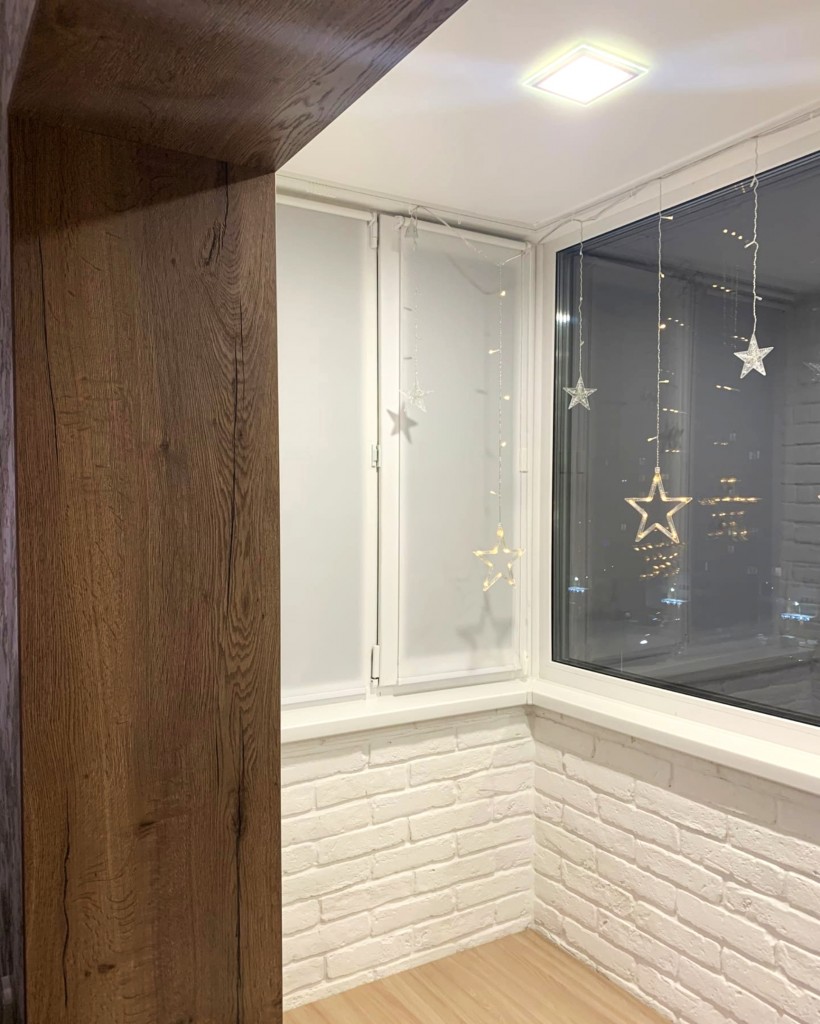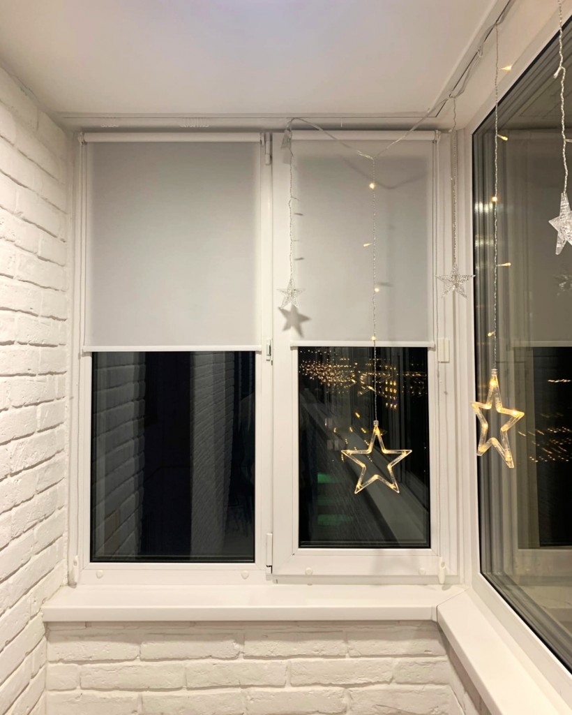 Представляем вашему вниманию белые матовые рулонные шторы с 50%-й солнцезащитой. Это великолепное решение для лоджии, объединенной с гостиной.