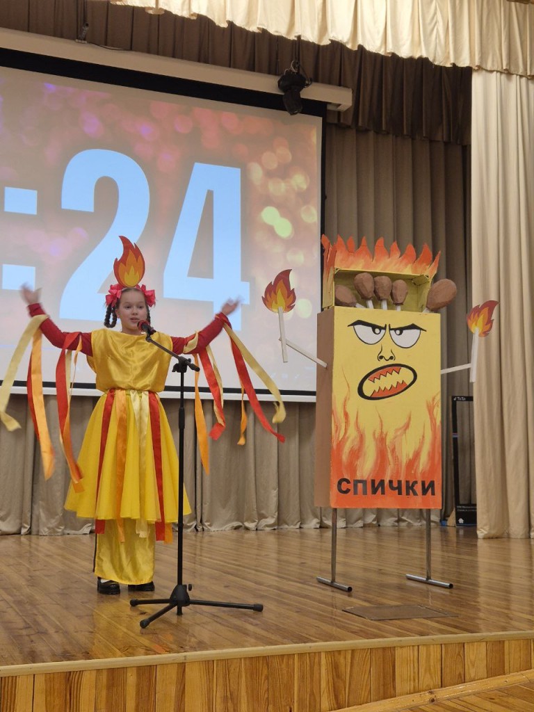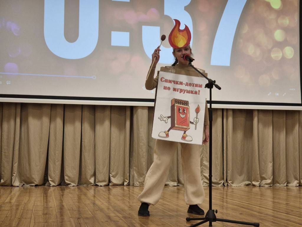 Далее участникам предстояло продемонстрировать свою оригинальность и артистизм. За одну минуту, проведенную на сцене, конкурсантам предстояло раскрыть серьезную тему. Младшие, например, ярко и креативно убеждали зрителей в том, что спичка – вовсе не игрушка, а пожара верная подружка! Учащиеся 5-8 классов предупреждали об опасности зимнего водоёма, а ребята из старшей возрастной группы делились своими достижениями вместе с Белорусской молодёжной общественной организацией спасателей-пожарных.