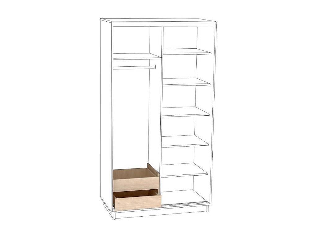 Шкафы изготовлены из высококачественной ЛДСП (LС) в цвете Дуб молочный или Чёрное дерево. По желанию вы можете выбрать двери-купе в цвет корпуса и/или с безопасным зеркалом Reflex (оклеивается противоосколочной пленкой и при ударе не осыпается). Двери можно комбинировать на свое усмотрение - для шкафа D2 существует 4 варианта комбинаций (ЛДСП/Зеркало, Зеркало/Зеркало и т.д.), а для мод. D3 таких вариантов уже может быть 8.