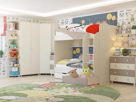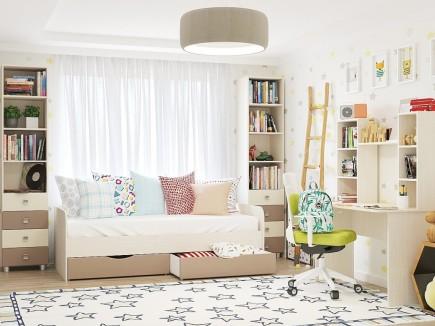 Многофункциональная мебель нейтральных бежевых оттенков создаст гармоничное пространство для мальчиков и девочек любого возраста. Удобство и эргономичность обеспечивает модульный принцип комплекта, позволяя оформить как комнаты небольшой площади, так и просторные помещения.