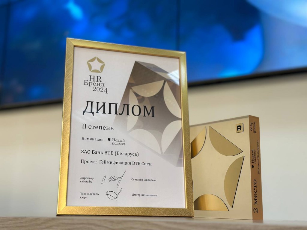 ВТБ (Беларусь) был удостоен награды за проект «Геймификация ВТБ Сити», направленный на создание современной мотивационной среды для сотрудников. Механизм геймификации позволяет всем работникам банка быть частью единой цифровой экосистемы, проявлять свои профессиональные навыки и активно участвовать в бизнес-процессах организации.