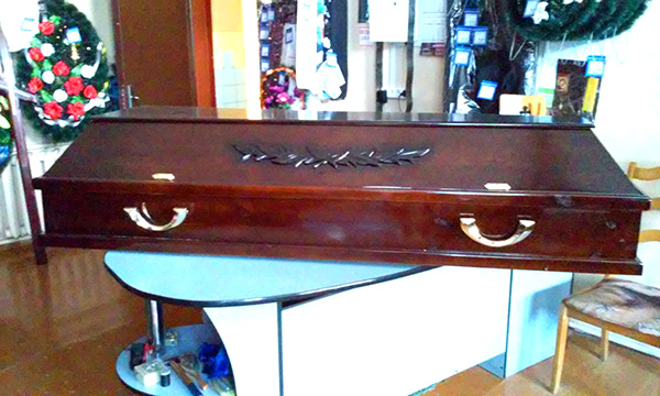 В магазине представлен большой выбор гробов.