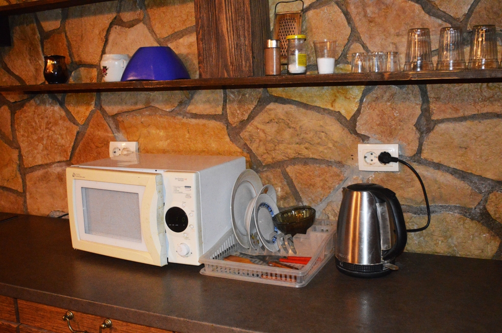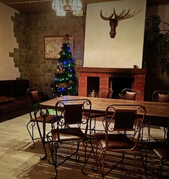 После баньки с веничком можно расслабиться перед камином в просторном зале, оборудованном всем необходимым для комфотного отдыха с настоящим камином, в котором можно приготовить ароматный шашлык. В комнатах Вам будет очень комфортно - удобная кованая мебель, кожаные диваны и большой ЖК телевизор (есть спутниковое телевидение и караоке). Обязательно предварительный заказ. Возможен безналичный расчет.