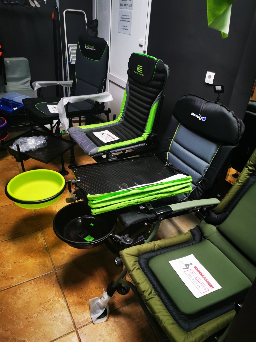 - кресла фидерные, стулья, палатки, спальные мешки и прочие полезные товары для отдыха на природе