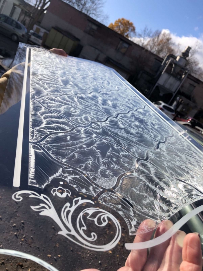 Художественная пескоструйная обработка является самым распространенным и доступным видом декорирования стекла.