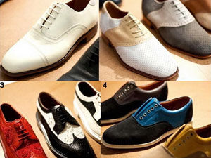 Фото: 1 - деловые оксфорды, 2 - полуботинки с перфорацией по площади, 3 - оксфорды, 4 - полуботинки с настрочной союзкой Florsheim by Duckie Brown (на всех фото)
