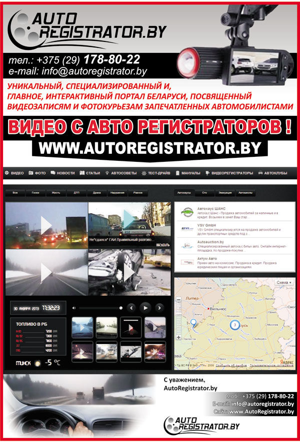 AutoRegistrator.by – это ресурс, который вмещает информацию о многом, что связано с автомобилями, своеобразный все республиканский форум автолюбителей. Он создан для большой аудитории людей – автомобилистов, которые, пройдя простую регистрацию, получают возможность размещать видео с авто регистратора, высказывать своё мнение об увиденном, обсуждать, комментировать, делиться информацией, принимать участие в голосованиях, делиться ссылками с друзьями в социальных сетях.